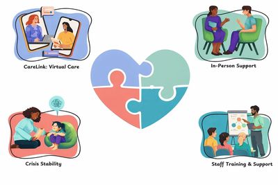 At the core of the initiative is CareLink, a fully integrated support system that provides 24/7 access to care through a secure app available on phone or computer. CareLink is not passive or limited to appointments. It is an active, responsive support environment that travels with the youth, ensuring they are never without guidance, connection, or resources.